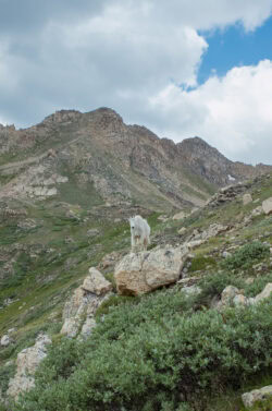 When it comes to the mountain goat, he is a bit more honest about his motives and intentions. He will let you get close, knowing confidently that he can escape you on his home turf. He is curious about your presence, but perfectly happy to scramble back up to a full fourteen thousand feet, perched on a boulder during a violent thunderstorm. He is wise to not fear the rain and he is at-ease because he has never heard the one-in-a-trillion headline news about lightning strikes. Besides, if the lightning kills him, he’d never know it.