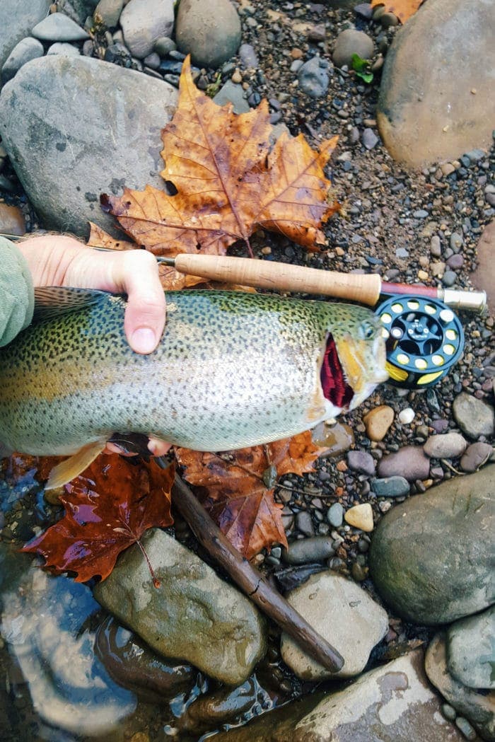 His faded camo hat and grey-flecked goatee are more congruous with the region than the top of the line fly fishing gear he’s holding.